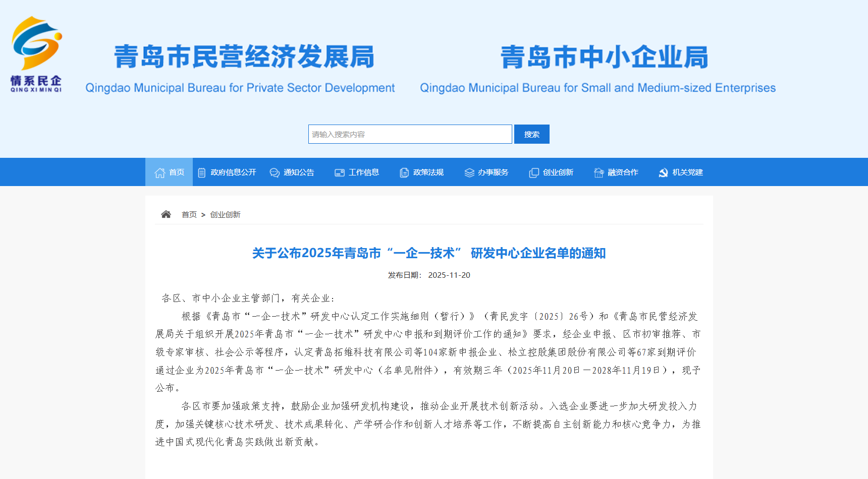 11月20日,2025年青島市“一企一技術(shù)”研發(fā)中心認(rèn)定名單正式公布。青島海洋新材料科技有限公司(AMMT海美特)憑借在改性聚脲技術(shù)的深厚積累與創(chuàng)新成果成功獲得認(rèn)定,標(biāo)志著企業(yè)在高分子材料領(lǐng)域的專業(yè)實力和技術(shù)創(chuàng)新水平獲得官方認(rèn)可,是海美特技術(shù)創(chuàng)新道路上的又一重要里程碑。