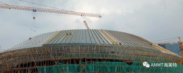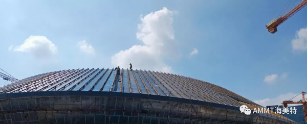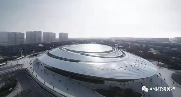 場(chǎng)館整體以“星際漩渦”為設(shè)計(jì)理念,總建筑面積約8萬方,擁有座位4087個(gè),其中以設(shè)計(jì)聚脲作為防水的區(qū)域面積為1.5萬平米。青島海洋新材料科技有限公司聚脲材料成為電競(jìng)館屋頂防水唯一指定聚脲材料。