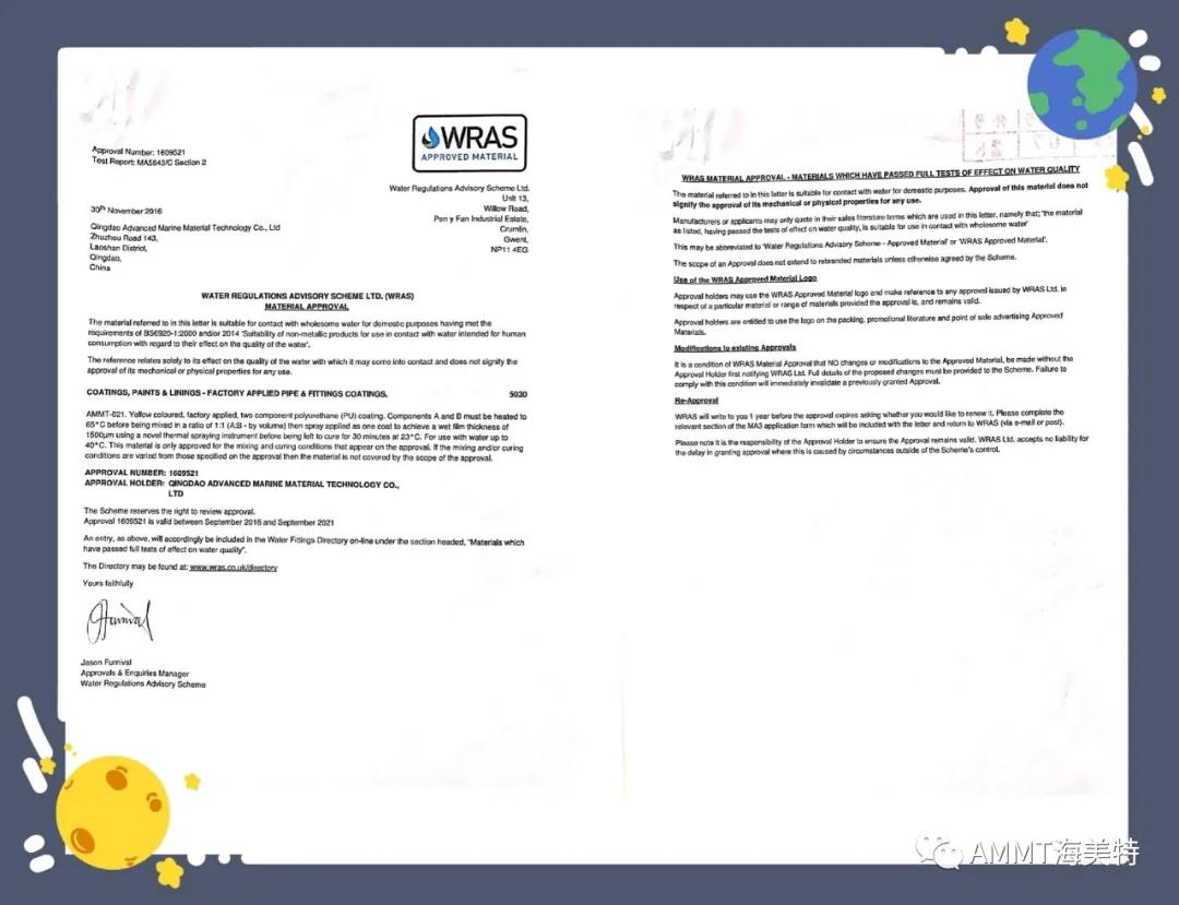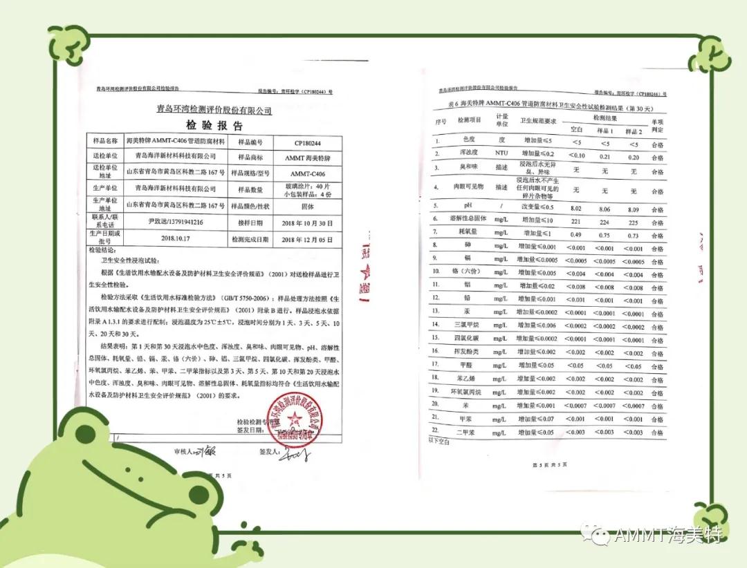 AMMT聚脲系列產(chǎn)品由半預聚體、聚醚、擴鏈劑等原料組成,綠色環(huán)保,100%固含量,零VOC,經(jīng)過現(xiàn)場噴涂成型的第三代聚脲彈性體。目前主要產(chǎn)品有:AMMT-021管道防腐材料、AMMT-022聚脲防腐材料、AMMT-030高性能聚脲防水材料等。其中管道防腐材料,通過了衛(wèi)生部飲用水檢測和英國皇家水務飲用水認證,達到涉及飲用水的標準。