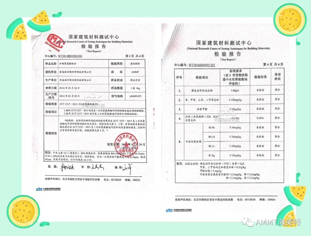 AMMT水性系列產(chǎn)品由乳液、固化劑、顏填料、助劑和去離子水制成的雙組份水性材料,是一款健康安全、用途廣泛、性價比優(yōu)異的特種材料。目前主要產(chǎn)品有:AMMT-073水性聚氨酯面漆(包括高伸長、防涂鴉、抗靜電等類型)、AMMT-014水性環(huán)氧底漆、AMMT-062水性聚氨酯修補膩子、AMMT-047聚合物地坪材料等。AMMT水性系列產(chǎn)品是以水為稀釋劑,綠色環(huán)保,無毒無害,零 VOC,是完全滿足新標準的環(huán)保要求的綠色環(huán)保材料。