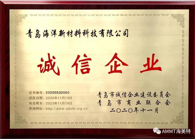 近日,青島海洋新材料科技有限公司參加了青島市誠信企業(yè)認(rèn)證評(píng)選活動(dòng),青島市誠信建設(shè)委員會(huì)與青島市商業(yè)聯(lián)合會(huì)對(duì)公司的信用狀況進(jìn)行了評(píng)價(jià),同意授予公司“青島市誠信企業(yè)”的榮譽(yù)稱號(hào)。這是公司首次獲得該殊榮,對(duì)公司進(jìn)一步推動(dòng)市場(chǎng)開發(fā)和可持續(xù)發(fā)展有著重要意義。