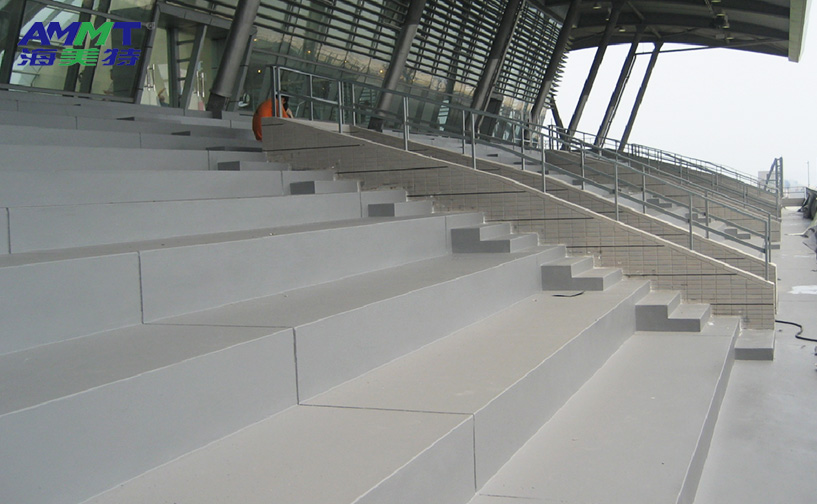 海美特自主研發(fā)的第三代噴涂聚脲彈性體材料,通過A組分改性半預(yù)聚體與B組分端氨基聚醚、胺擴(kuò)鏈劑、納米填料、顏料組成,現(xiàn)場噴涂成型。